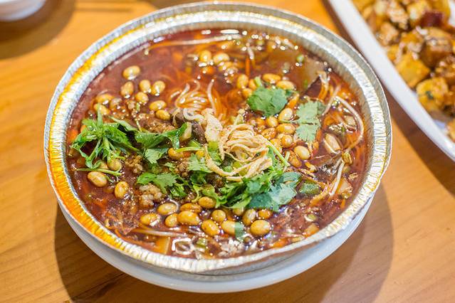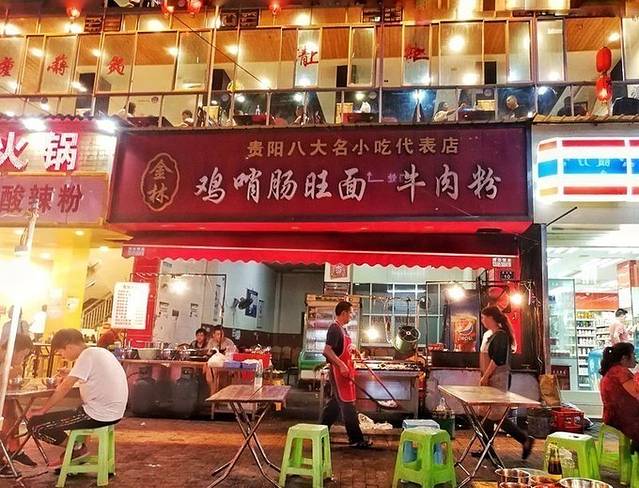 到了酒店放下东西休息了会,我们直奔美食街,吃了碗冰粉,就在冰粉店的隔壁,我发现了 贵阳八大名小吃店——鸡哨肠旺面牛肉店(地址在民生路4号)肠旺面就是猪血旺,猪大肠,面是那种很劲道的细细的面。“肠旺面”是贵阳特色美食,深受 贵州人喜爱的一种面食,相比面条, 贵阳人似乎更偏爱“粉”一些,但对于“肠旺面”就列外了。