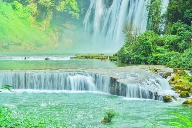 第三天我们是从早上8点出发,到黄果树景区大概9点40,门票:155/人,含观光车(门票建议在网上团购,当时我们就是没有做好攻略,感觉被坑了,去的时候工作人员告诉我们没有景区纯套票了,除非前一天预定好才行,非要搭配徒坡塘6D电影或者龙宫)。