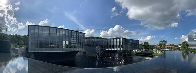 吃饭的时候和老板闲聊,老板告诉我们附近有一个贵阳很火的网红打卡点,正好我们去龙架山国家森林公园,可以顺路去打个卡。按照老板的指引,从小镇出来开车几分钟就到了,当天天气非常好,蓝天白云的,从大门进去景观设计非常有感觉,建筑也很有设计感。
