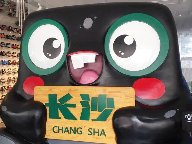 找到后第一个看到的是一个很大的臭豆腐卡通形象公仔,叫臭仔,非常可爱,有很多人都去合影,同行的姐妹也忍不住上前合影。