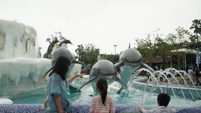 海豚亲子手工坊可以DIY,酒店内的火烈鸟岛、南花园和海景草坪,非常适合带着老人家的家庭休闲游