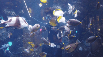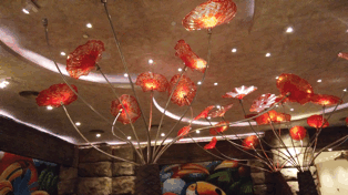 而大人的选择更多了,重磅出击的是阿拉斯加长脚蟹、龙虾等等。最大的惊喜,孩子喜欢得不得了,餐厅右侧彷如进入了色彩斑斓的海底珊瑚世界,还看到饲养员在投喂呢。