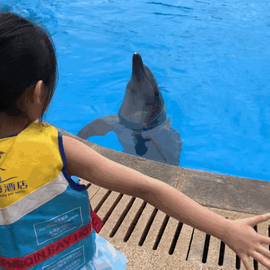 方方在横琴湾酒店非常幸运成为了小使者,机灵的海豚会跳舞蹈呢,方方可以近距离与海豚互动、喂养海豚,学会保护海豚的知识,这可是海豚保护小使者的超级福利!方方说,还想再去一次,回家睡觉的时候还在想着她带海豚跳舞的画面。