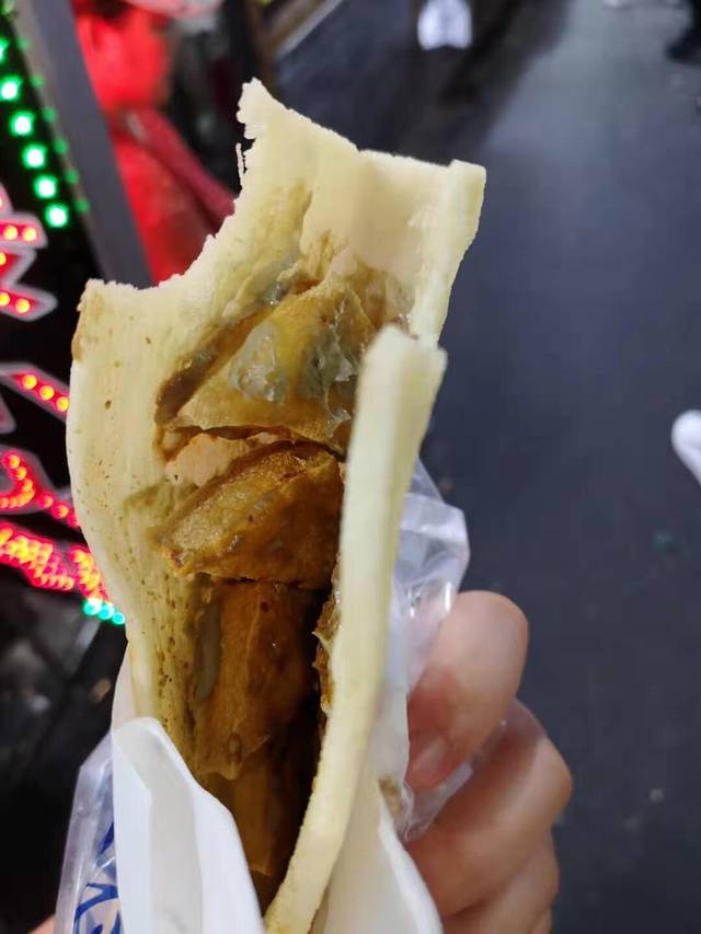 为了吃这个炸冷面夹臭豆腐,排了20分钟的队,但值得!刷在冷面皮上的酱汁,臭的香浓,真心好吃!!