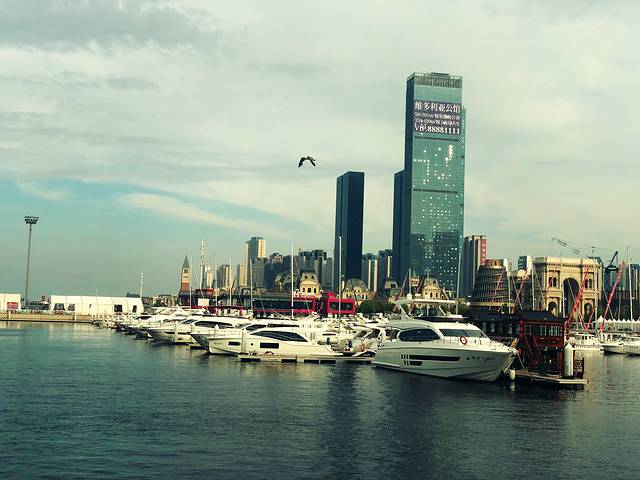 朋友邀请去帆船中心开帆船出海游览,帆船中心洽好位于东港音乐喷泉广场,邻近东方威尼斯水城,开完帆船步行游览水城,傍晚时分海风徐徐,租辆脚踏车在广场骑行,观赏音乐喷泉,好不惬意!