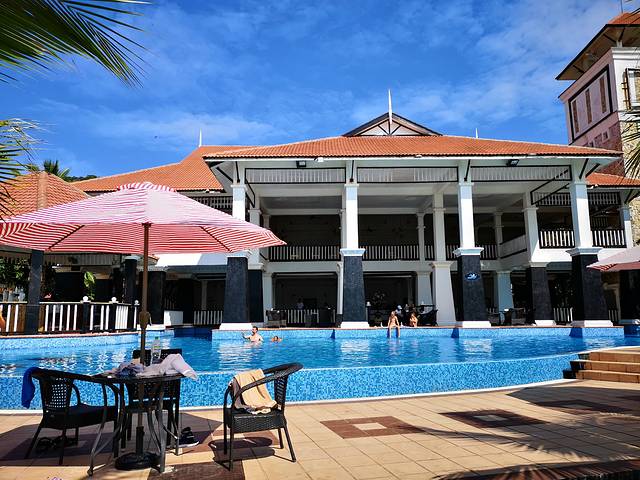 早上起床后开始整理行李,然后去餐厅吃早餐,接着退房(10点),快艇1点会把我们送到登嘉楼,退房后到上快艇期间还有两个多小时的时间,秋姐因为昨天被晒伤了,也不敢再下水,我们就在度假村里走走看看拍拍。