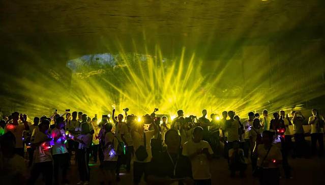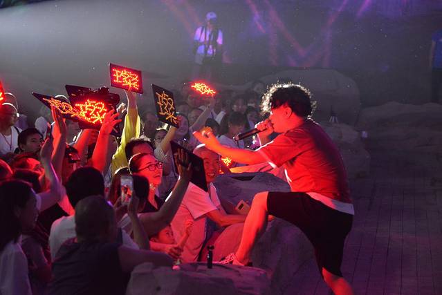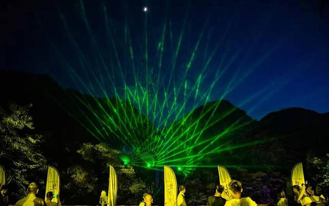 除了情侣体验、情歌对唱等活动,8月7日晚,一场炫酷十足的“天眼爱情摇滚秀”更是给游客满满的惊喜。活动现场,伴随着全场互动倒计时,一场光的表演瞬间吸引了在场观众的注意力。
