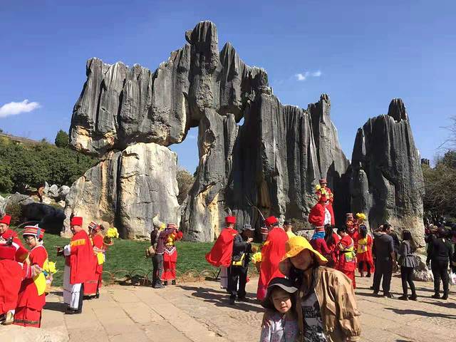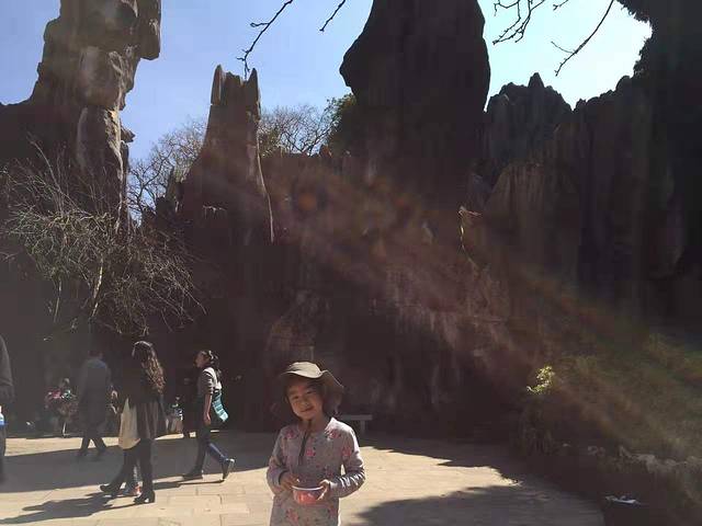 No.8,今天焦点找点啥,说说石林和烤鸭!还好昨晚订的酒店距离石林景区只有近二百公里而且全程高速,所以在睡到自然醒后于中午抵达著名的石林,我和媳妇是故地重游了主要还是希望让丫头涨涨见识开阔眼界,在世界级的地质公园里领略大自然的鬼斧神工却是非同凡响。傍晚六点就赶到了酒店所在地昆明市宜良县,至于为什么要歇脚在这里那当然是闻名遐迩的宜良烤鸭、至于为什么要早早地赶到那当然也是要给排队吃烤鸭留够时间,还真是,等到了宜良最著名的学成饭店才发现光门口车停了一里地,为了尽快品尝到美食又赶去了也很恨有名的宜良烤鸭城,到了门口依旧是车水马龙、人声鼎沸,可以看到来自五湖四海的盆友都在这里啃鸭子,还好有地停车没太排队(不愧敢叫城确实很大),炒的菜味还比较讲究至于烤鸭的特点只能说和常吃的北京烤鸭比,它不是将肉片下来而是剁成一块块的不过也是烤的外焦里嫩噗嗤冒油也是蘸酱但不卷饼,味道还不错是另一种舌尖上的体验。带丫头放完花炮早早休息明天继续。