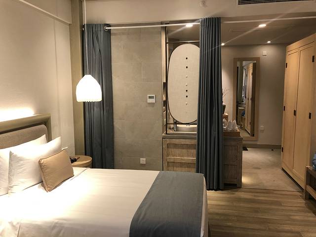 卧室与洗漱区一帘隔之。