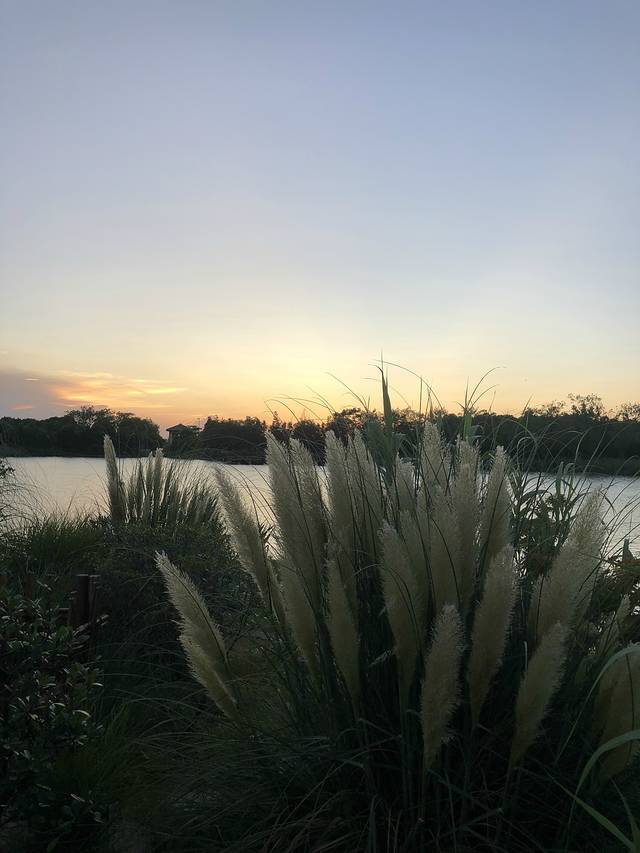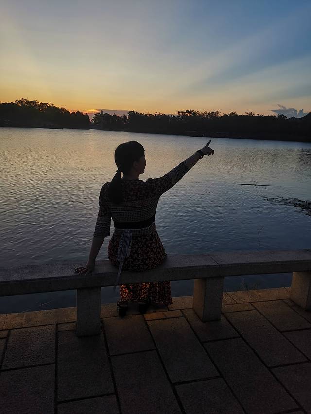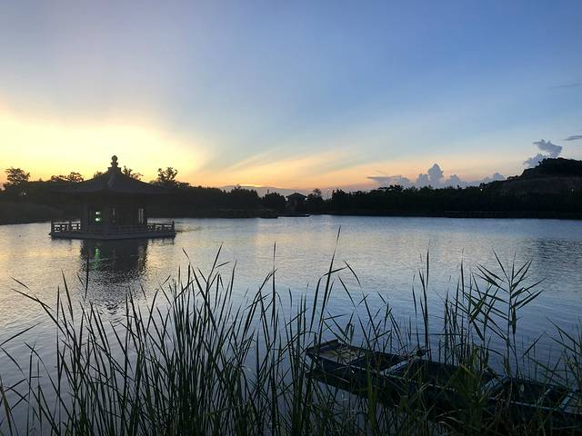 夕阳西下,湖景迷人。
