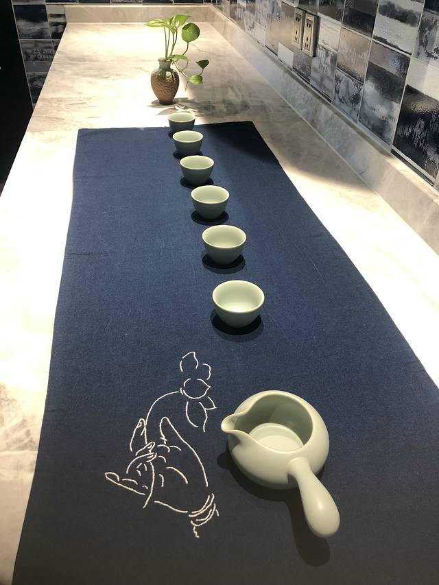 “青花”,以青花瓷为主题,体验布艺,就是绣花。因为一副作品需要耗费近两个小时,我们想体验更多的项目,所以就放弃了。