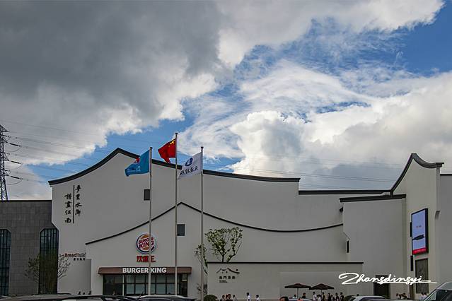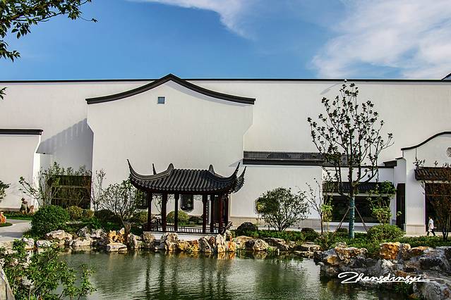 “梦里水乡诗画江南”为主题的阳澄湖服务区并非象传统形式上的服务区那样,对称性设置,而是南服务区仅提供了最基本的服务项目,主题的呈现均在北服务区。上次从沙家浜回来的时候稍绕道上了沪宁高速,正好进入阳澄湖北服务区。昨天从苏州出发,20多分钟的车程即可到达,在南服务区驶离高速后有辅路可绕道到北服务区,非常方便。
