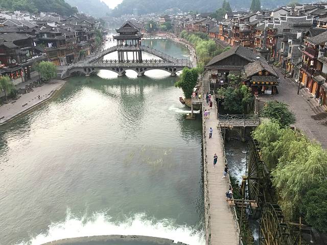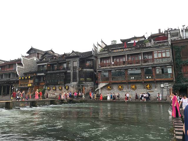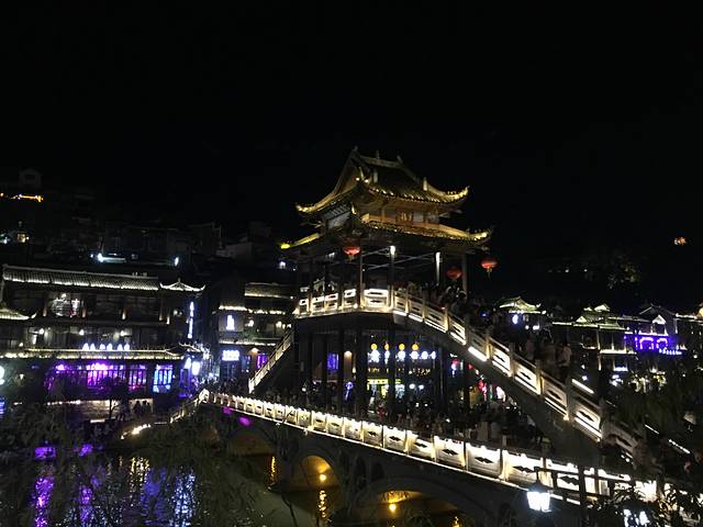 晚上到达古城,去桥上看看夜景,沱江的水不干净,有很多水草,从上看除了灯光好看外,廊桥是一个独特的风景,可是人太多了,搞的一点心情都没有。青旅老板介绍说,凤凰就这一条街,一眼望得到底。我也感觉是这样的,很吵,到处是酒吧,燥的很。第二天起个大早,感觉一下清晨安静的凤凰古城,就坐车走了,人少的时候,看看还是挺有感觉的。晚上那叫一个挤。