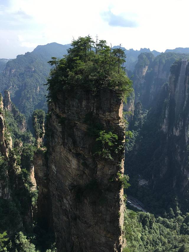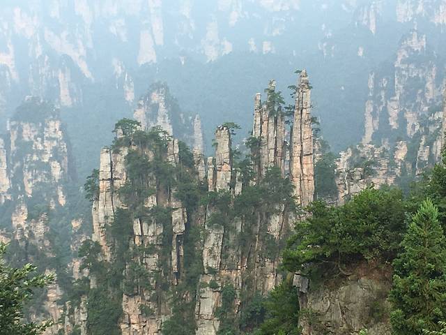 昨晚住的青旅没想到是个导游的圈子,特意问了下怎么玩人少,美女给的意见很有用。本来想百龙电梯上,可是美女说人家都是5点多就去排队的,我想还是算了吧,百龙电梯下吧。听美女的,一早7点多走天子山索道上,哈哈人真的很少,我一个人坐一个包间,感觉真爽。上去后去贺龙公园,景色都在一块的,好几个观景台,在观景台上可以近距离的看各个山头,不过象天女散花呀这些还是感觉太远了,只能远远的感觉一下,要说一下,一定 要上天子阁,这里可以远眺,御笔峰和天女散花在这里都可以看到。