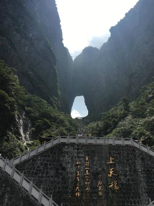 袁家界的天生桥,桥洞里是朦胧的白色,和我想的真是不一样,还有哈利路亚石,最佳的观赏位置 是在那个铁桥的中央,可以从上到下完整的看到,感觉气势壮观。