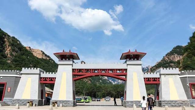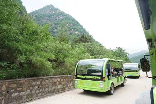 下车后,游人从四面八方走来,大家聚集在观光车旁,准备进山。今天的游人特别多。路上的老大爷看上去60出头的年纪,精神抖擞,神采奕奕。