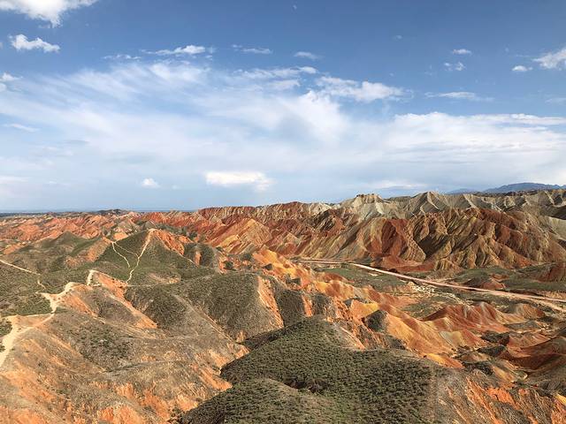 从敦煌到张掖一路路况好,路过瓜州和嘉峪关,瓜州的哈密瓜,西瓜等瓜果真不错,中午可以在嘉峪关吃午饭,嘉峪关到张掖地质地貌公园大概还有3小时,丹霞地貌景观层次分明,色彩艳丽,其中2号,4号观景台观景最好。