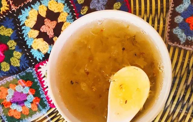 另外桂花银耳羹和水饺是标配,熬得非常浓稠,甜度适中还有桂花的香味,喝一碗暖和了我的小肚子,很适合女生。