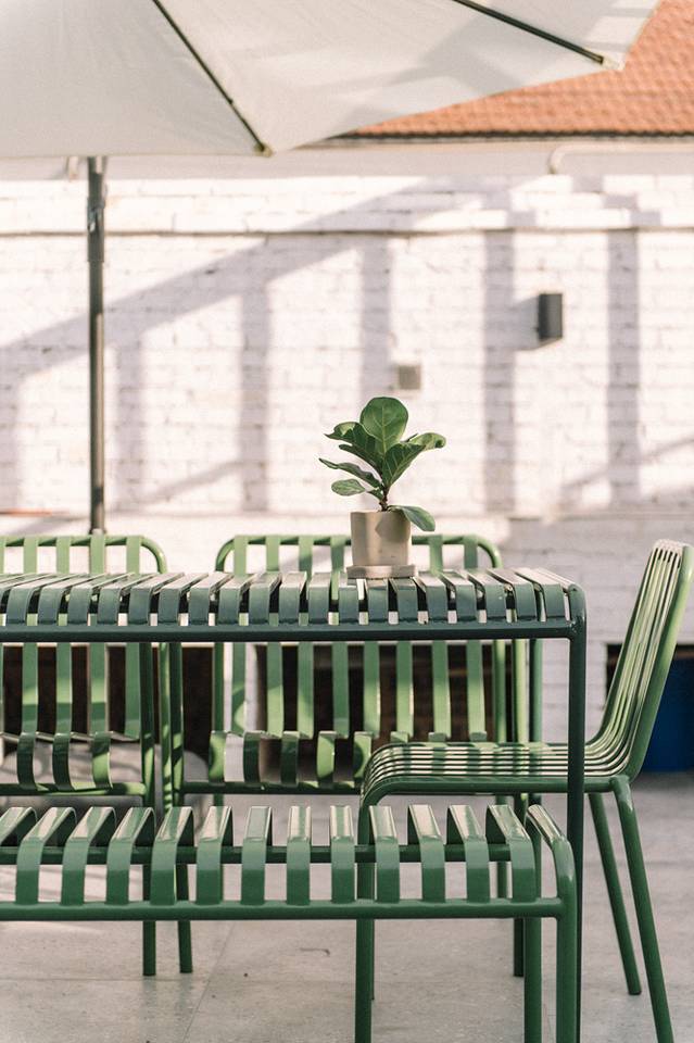 屋外还有一个别致的休闲区,若干个木质长条制成。还有专门设置了一个C形的坐池,晚上在这里喝喝咖啡,发发呆,是个休闲的好去处。