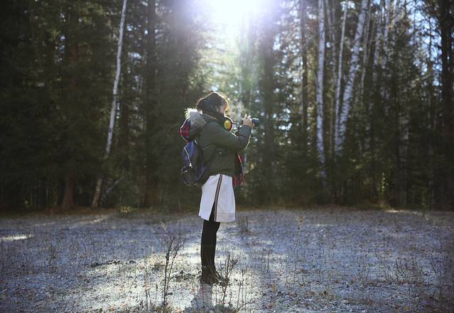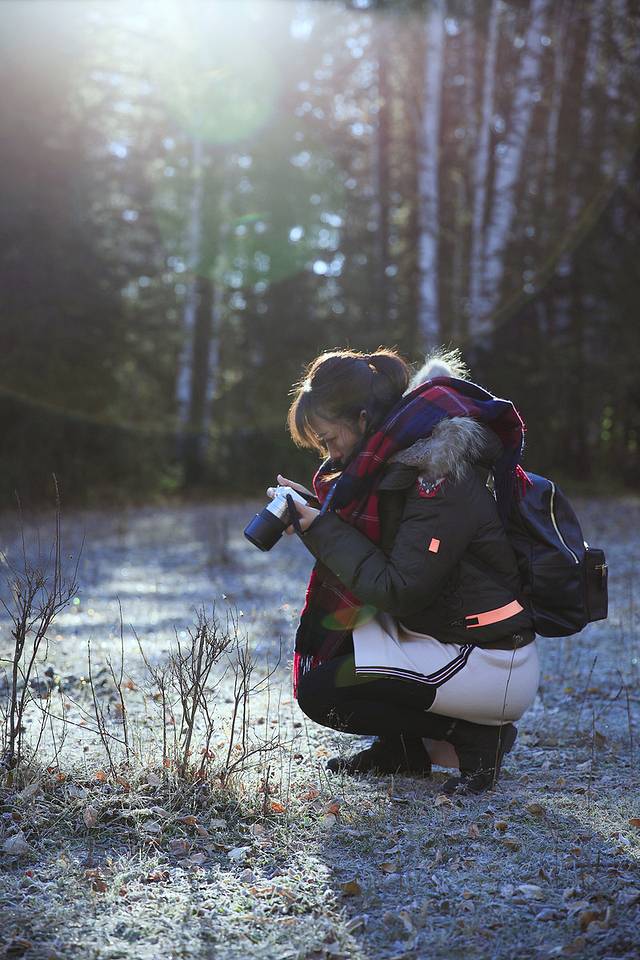 清晨禾木的树林,冰碴子被第一缕阳光折射出五彩斑斓的颜色,完全没调色~