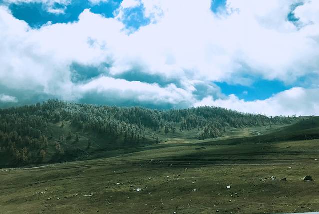 从喀纳斯出来我们到贾登峪停车场取了车就直接开往禾木乡,沿途的路又是一幅又一幅的油画,每到一个地方我都不得以发出感叹,还被老公笑话说,你一路都在感叹。新疆的风景特别神奇,我虽然是在别人觉得风景优美的云南长大,但是新疆的美是绵延不绝的美,刚到新疆时,你以为已经看见了最美的棉田,后来又看到更美的山丘,再是接二连三更为惊叹的草原、云杉群、雪山、沙漠,连风沙公路都是无与伦比的美丽,一天经历了四季,一天经历了无数个地貌,就像跨越了几个国家,每看到一个风景,都觉得比前面看到的还美,好像美是无止境的(丝毫不夸张)~~~