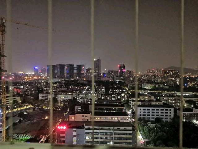 夜晚的深圳湾公园,隔桥眺望香港