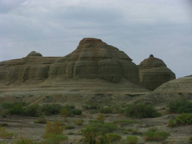 乌尔禾魔鬼城是在干旱、大风环境下形成的风蚀地貌,长宽约5公里以上,地面海拔约350米左右。盛夏本不是大风的季节,而当我们走进魔鬼城时,顿时只感到大风呼呼吹来,在耳旁哗啦啦地呼叫。若遇风季绝对有鬼哭狼嚎的恐怖感。