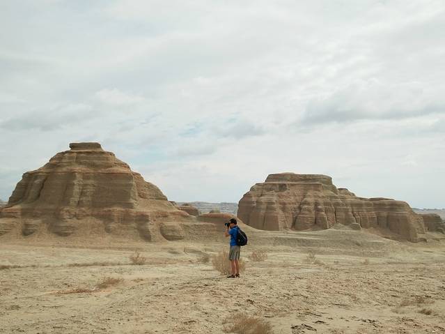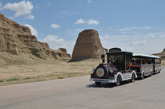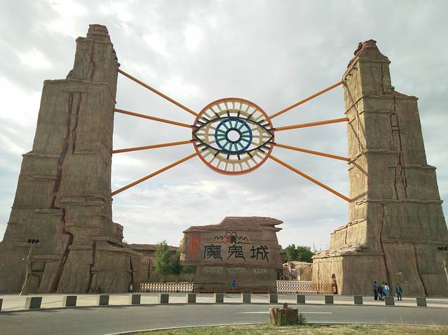 坐景区交通车进魔鬼城,但景区规定11点半前只能随车而行,每一个景点停留10分钟,。11点半后可任意景点随上随下。等到11点半实在是太漫长了,我随车而进景区,到第一个景点下车后便开始步行。