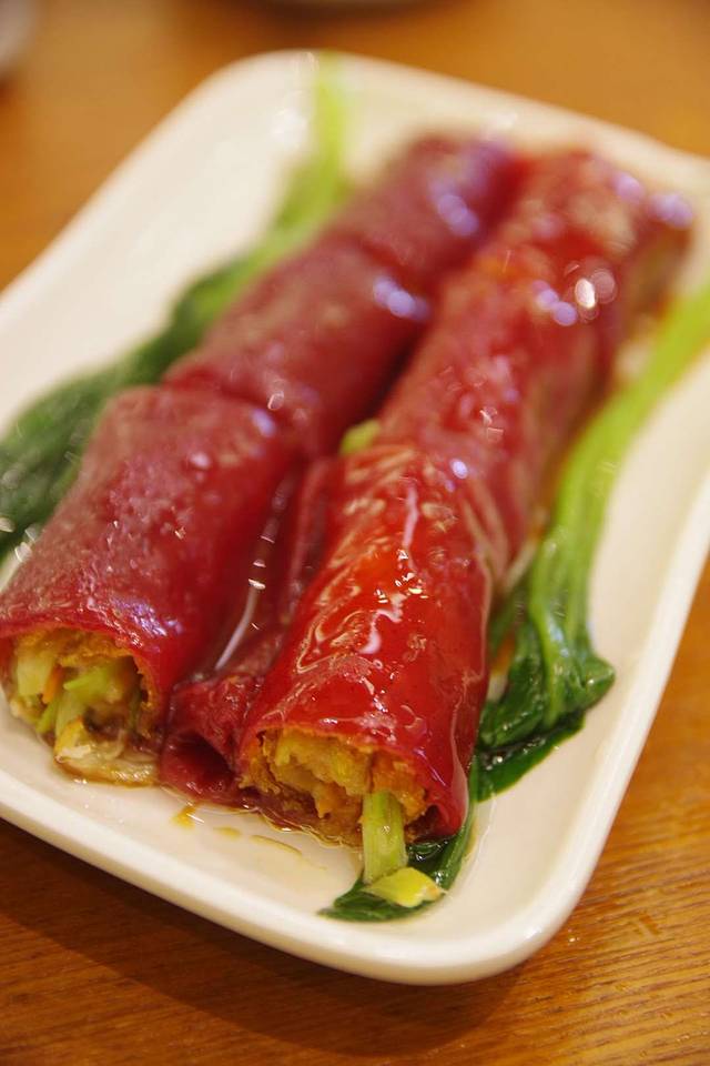 红米脆皮肠粉:红色的外皮,酥脆可口馅料丰富。