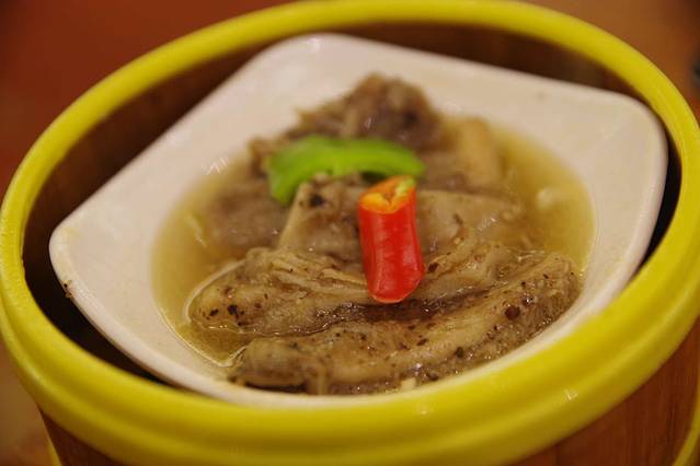 香芋蒸排骨:芋头的香气和滑软的排骨,带软骨的排骨很入味嚼劲十足。浓郁的黑椒爽脆的牛肚,黑椒牛肉实在够味,花生蒸凤爪,软烂的凤爪价值丰富越啃越香。
