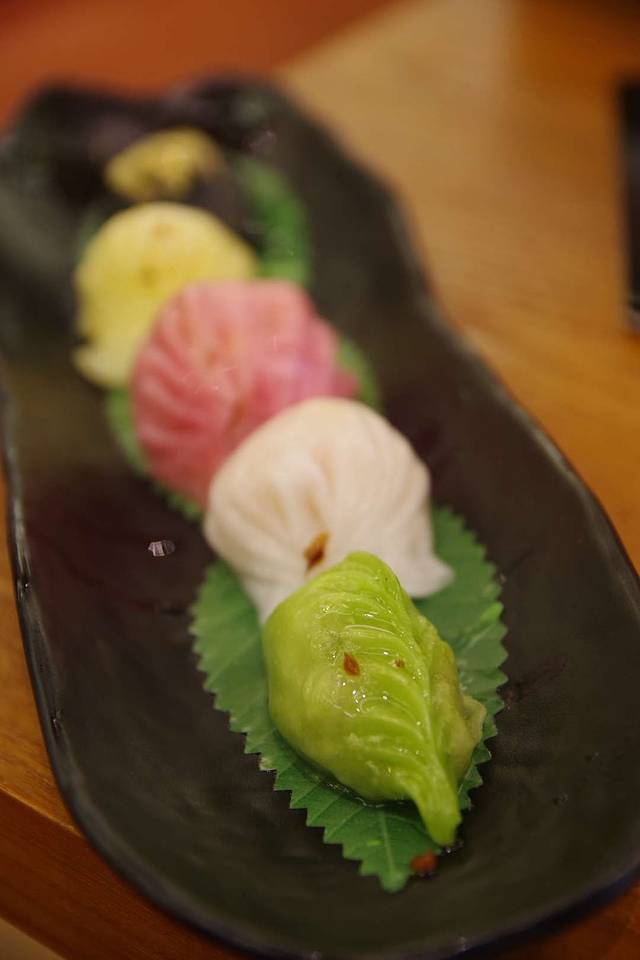 五彩虾饺:五种颜色的虾饺,色彩缤纷小朋友很喜欢,虾饺鲜美Q弹。