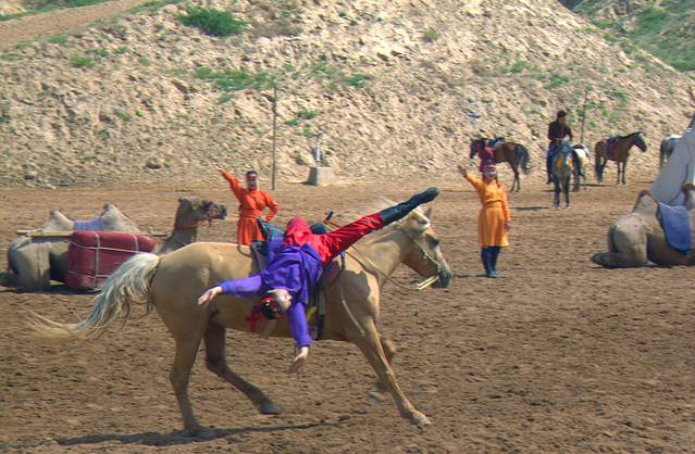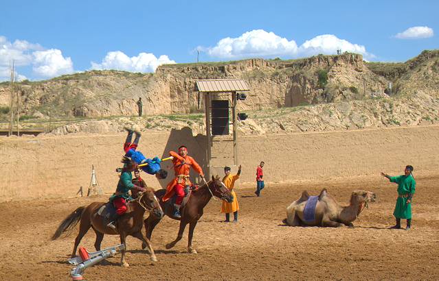 宁夏旅游景点水洞沟马战演出《北疆天歌》