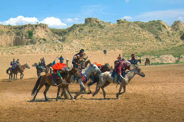 宁夏旅游景区水洞沟马战《北疆天歌》