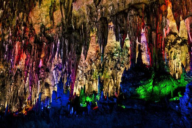 往前走,沿着潺潺溪水,到达了太古洞,作为咸阳儒生家躲避搜捕的最后藏身之地----太古洞,又称为“桃源秘径”,长约3公里,距今已经有3亿多年历史,至今仍在不断生长发育。洞府体量庞大,气势磅礴,有宽敞的大厅、曲折的廊道,险峻的峡谷,幽深的地下河,还有五彩缤纷的钟乳石,景观秀丽。洞内钟乳挺拔,石笋丛生,石幔高挂,石柱巍峨,石帘低垂,石瀑飞流,地下河幽深。洞体规模之巨大,可谓集洞穴岩溶景观之大成。经过灯饰点缀的溶洞,五彩缤纷,如梦似幻,堪称“地下桃花源”。世界著名岩溶洞穴学专家朱学稳教授评价该洞穴是我国已开发洞穴中科研价值最高、历史最悠久、最神奇的地下地质奇观,是大自然赋予的鬼斧神工的艺术宫殿。