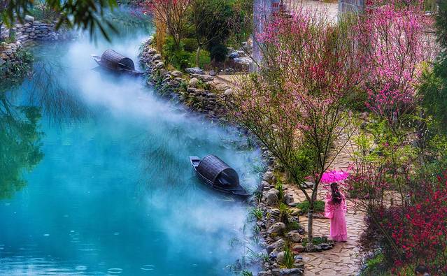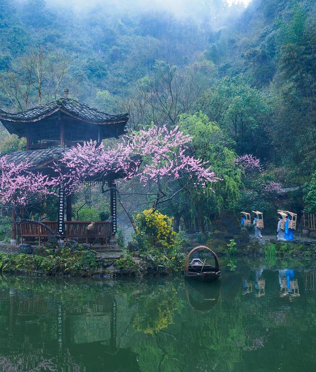 静静地依偎在武陵大山的深处,良田美池躺在古韵嫣然的亭台楼阁之中,雾气氤氲,鸳鸯浮于浅水,入时间深海,翔游于生命轮回,炼就千年桃源,景致悠然,中无杂树,芳草鲜美,落英缤纷