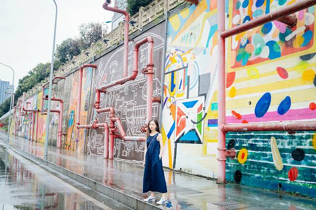 它现在成为了现代重庆一张时尚的新名片,涂鸦街上现代风格、抽象风格、嘻哈风格夹杂在一起,组合成新的时尚。涂鸦街建成后已经有一些年头,现在来的人不算多,不像热门景点一样扎堆都是人,可以自己安安静静拍照凹造型。