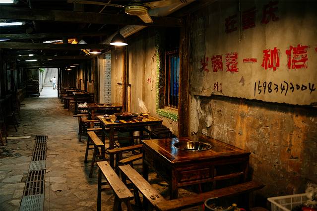 七星岗距离繁华的解放碑较场口地铁站就一站,出来就是居民区,老酒馆就在这里。