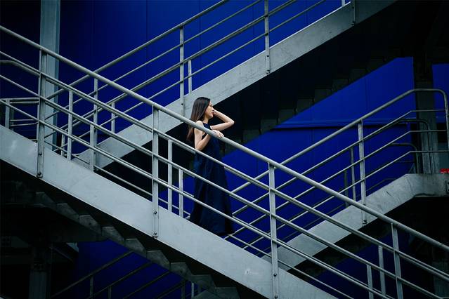 交错的楼梯 高饱和度又极简 真的这个背景很适合拍照。