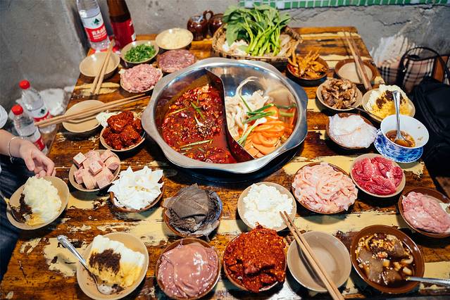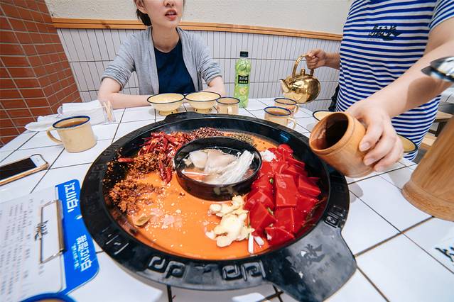 几十年的秘方打磨出的卤味,任你怎么吃都巴适。他们家的鲜鸭血锅底,淋上卤水,香,悄悄尝了一口卤汁,居然还有一点清香。锅底有点点辣,不能吃辣的小伙伴一定要点微微辣哦。