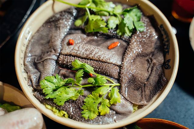 「屠场鲜毛肚」非常新鲜很脆,烫完一口一大块满满的满足感。