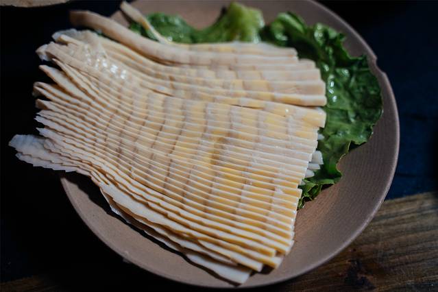 【笋】一根一根的下到锅里,等它自己随着开了的红油泡一起冒起来,不用加蘸料,直接放在嘴巴头吃,鲜美得板!朋友这个肉食动物居然在和我争着吃,我们就又叫了两盘。