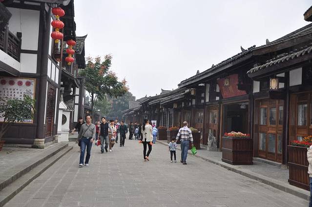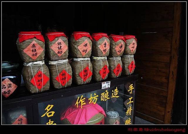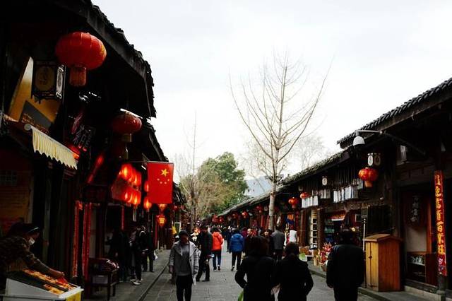 小商铺里,摆放着各种特色小吃和商品,店主在外面卖力地吆喝着,打出各种各样吸引眼球的广告。摆在外桌新鲜出炉的张飞牛肉,当地盛产的保宁醋,香味飘逸在空气中,使整个古城混合在独特的香味里。