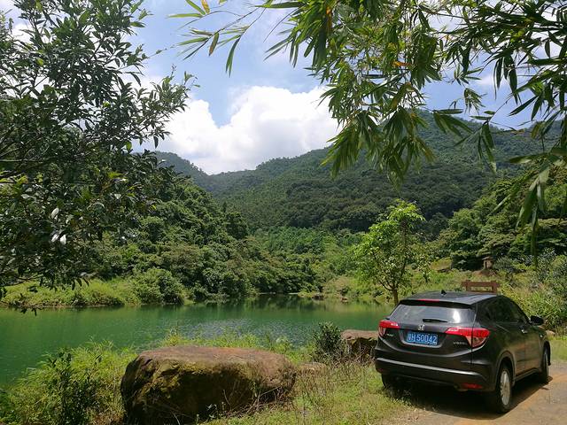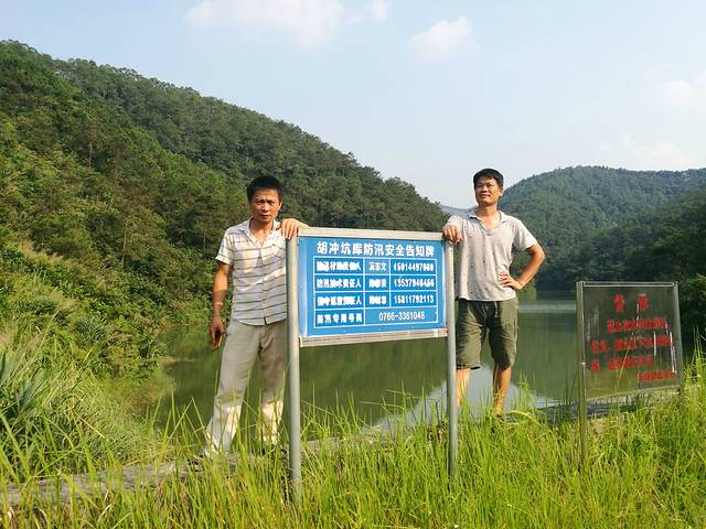 车子上到山坡上,附近是一个小型水库,胡坑冲水库。