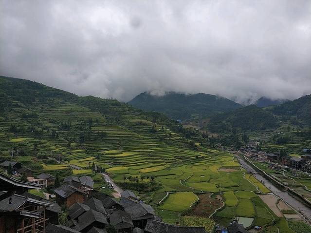 从酒店门口看西江苗寨梯田