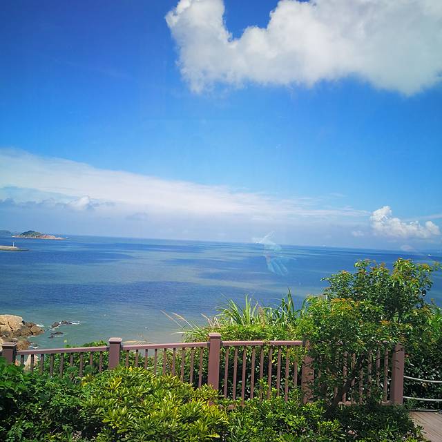 按民宿老板的指点,我们自己坐旅游302车,一路看着风景过去预订好的东海渔村。一路大巴环着岛走,蓝天白云、海水,当时感觉还不错!办理住宿,询问回程票事宜。老板也说只能第二天买!
