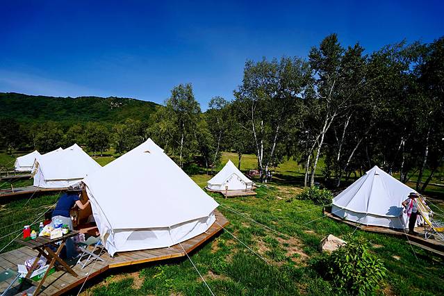 海坨山谷另一大特色一定是景区内帐篷酒店,为什么一定说自成风景,试想一下四周都是茂密的森林,脚下就是青青草地,旁边还有白桦林,这还不是自成一派的景色吗?而且帐篷酒店有10个家庭大房,满足一家4口住宿;20个标准单间房,满足2人住宿;一顶帐篷就可以为你撑起一片星空,景区的工作人员有给我们介绍,这里已经被誉为北京最知名的观星胜地之一了,你是不是也很想来这里体验一下?