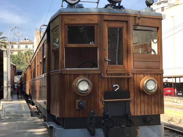 8月8日,前往soller小镇,乘坐古朴的木质小火车 有两种往返车票,一种是只到soller小镇,往返票价25欧元,如果再乘坐另一段去往soller port de soller 联程的往返车票是 32欧元 ,在旺季大家最好提前购买好往返车票,有时在soller小镇返回的人太多,只提供有车票的人进入车站。请大家注意,而且往返车票必单程购买要便宜很多。