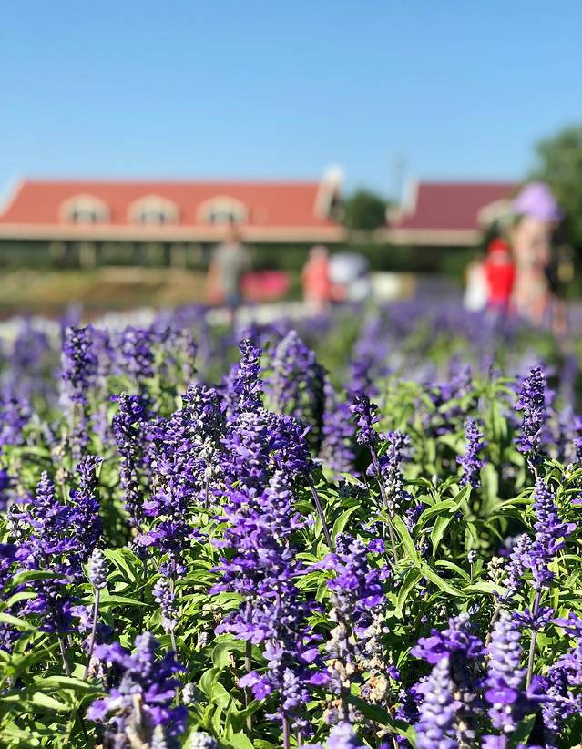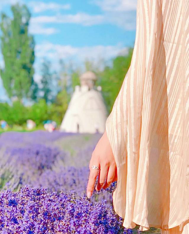 终于走到了那个在图片中看到的薰衣草园,推开车门就是汹涌而来的花香。正是盛开的花期,成堆的紫色小花开的热闹异常,蔚蓝的天空,干净的阳光和通透的空气,大片的薰衣草宛如深紫色的波浪层叠起伏,汇成一场醒不过的大地之梦。方圆数里,都笼罩在薰衣草的馥郁芬芳里。