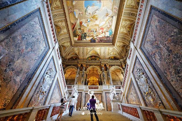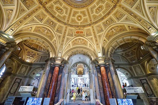 毕竟是艺术史博物馆,一入殿堂,整个博物馆的气质就是很不一样的。头顶的圆顶可以从中间的孔看到最顶层的圆顶,也是咖啡厅有关哦