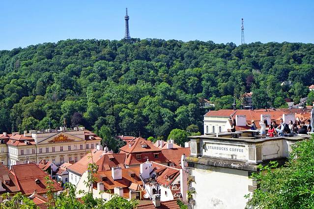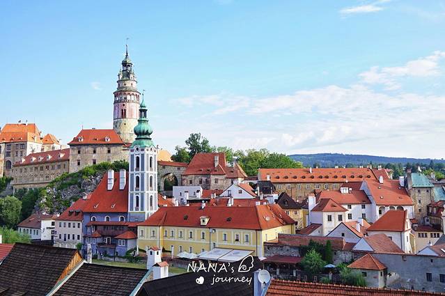 广场沿着主干道往上走,不远处就有一个小花园,是ck的一个小的观景台,在这里,仿佛穿越回了中世纪的小镇,城堡城镇构建了一幅美丽的景色